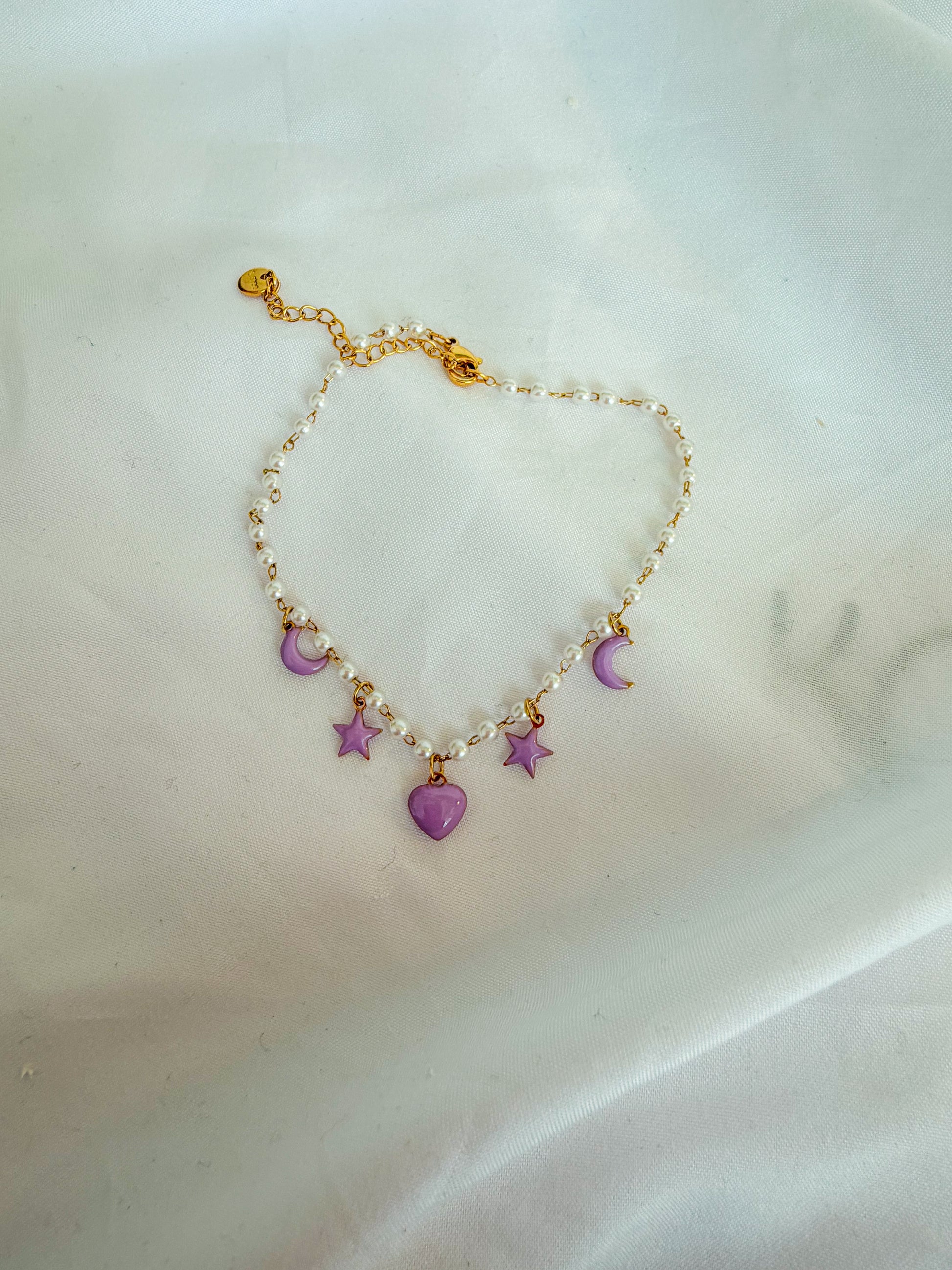 Cavigliera “Caroline special” con perline in acciaio inox. Color oro