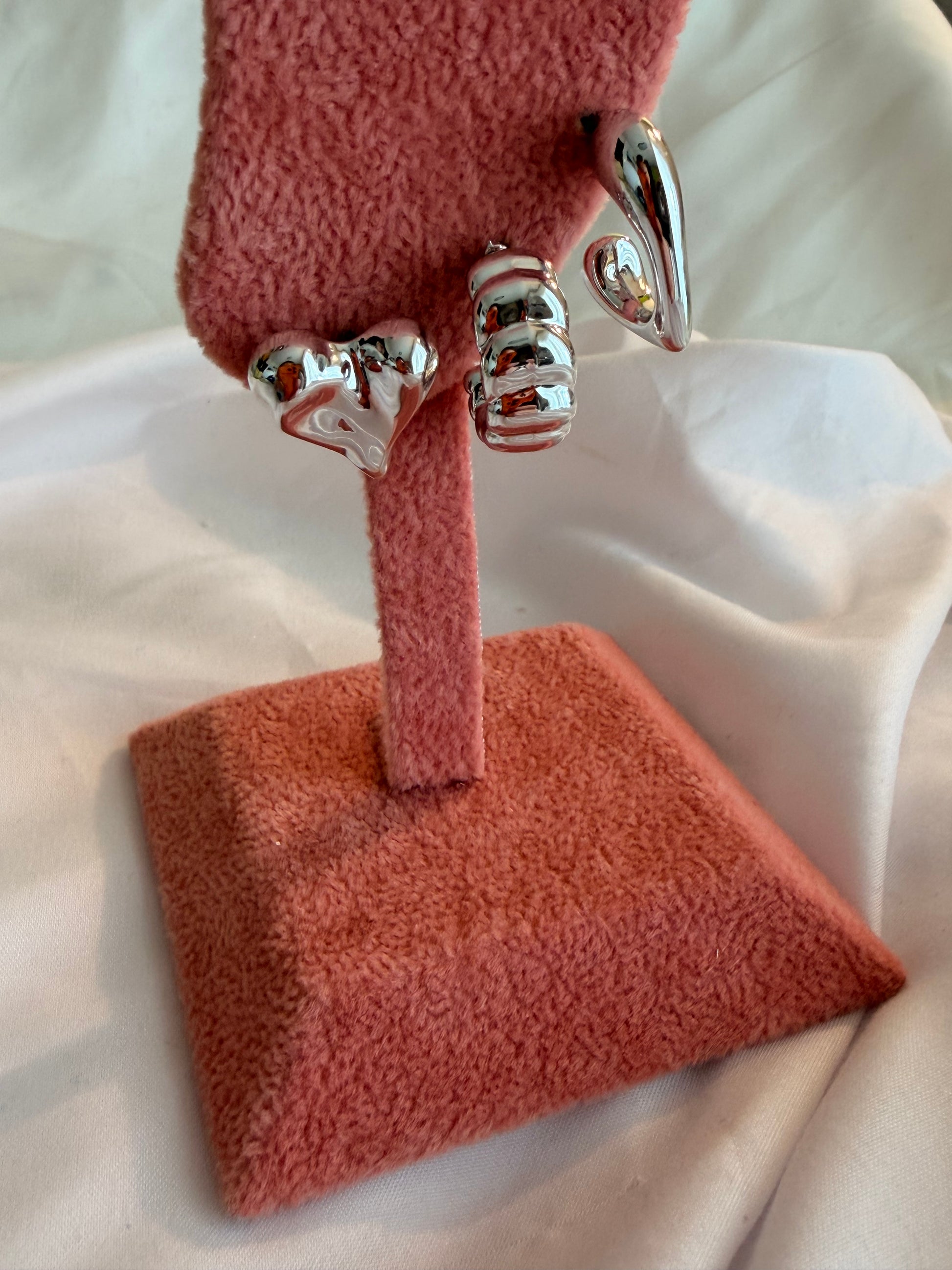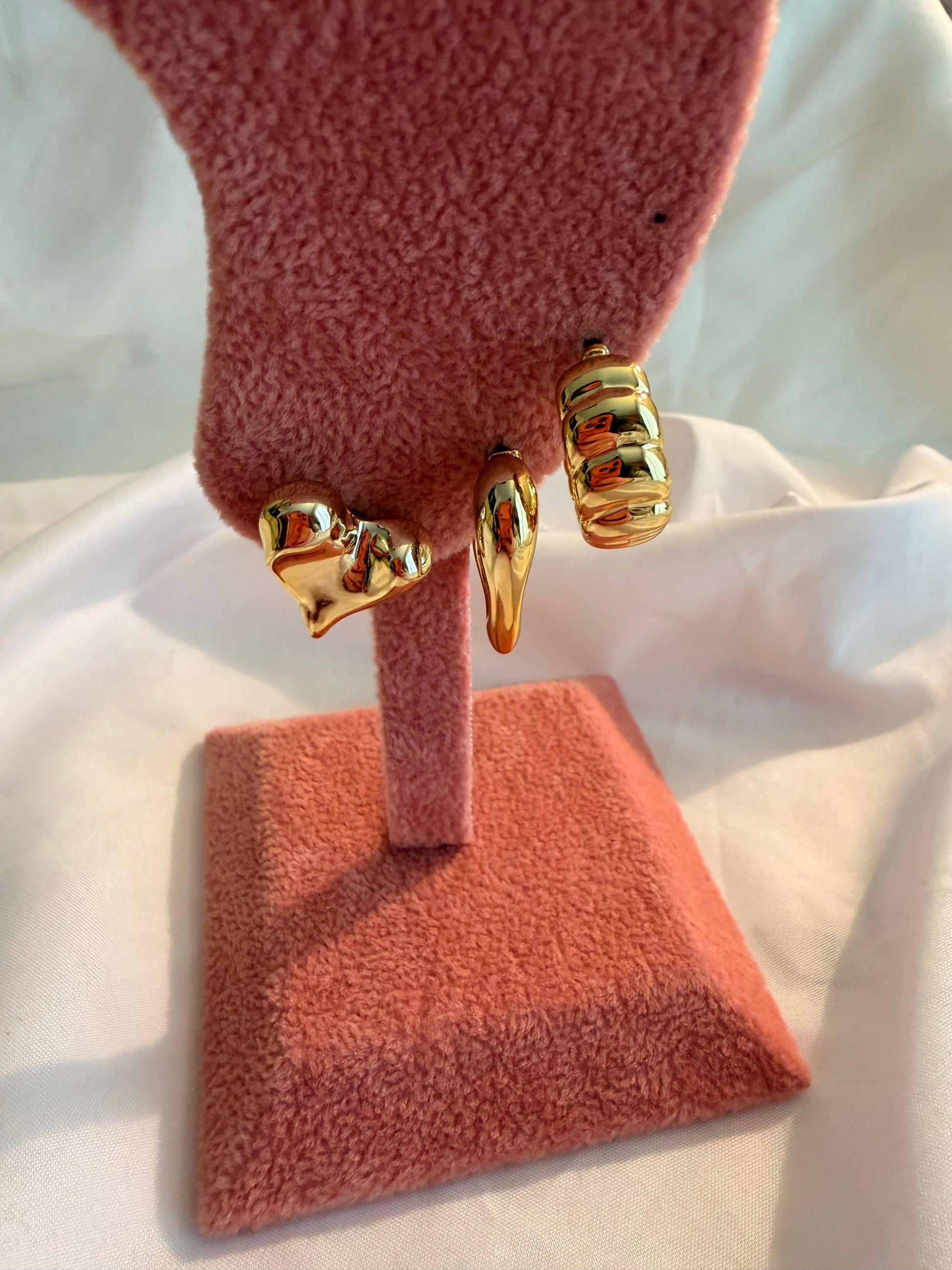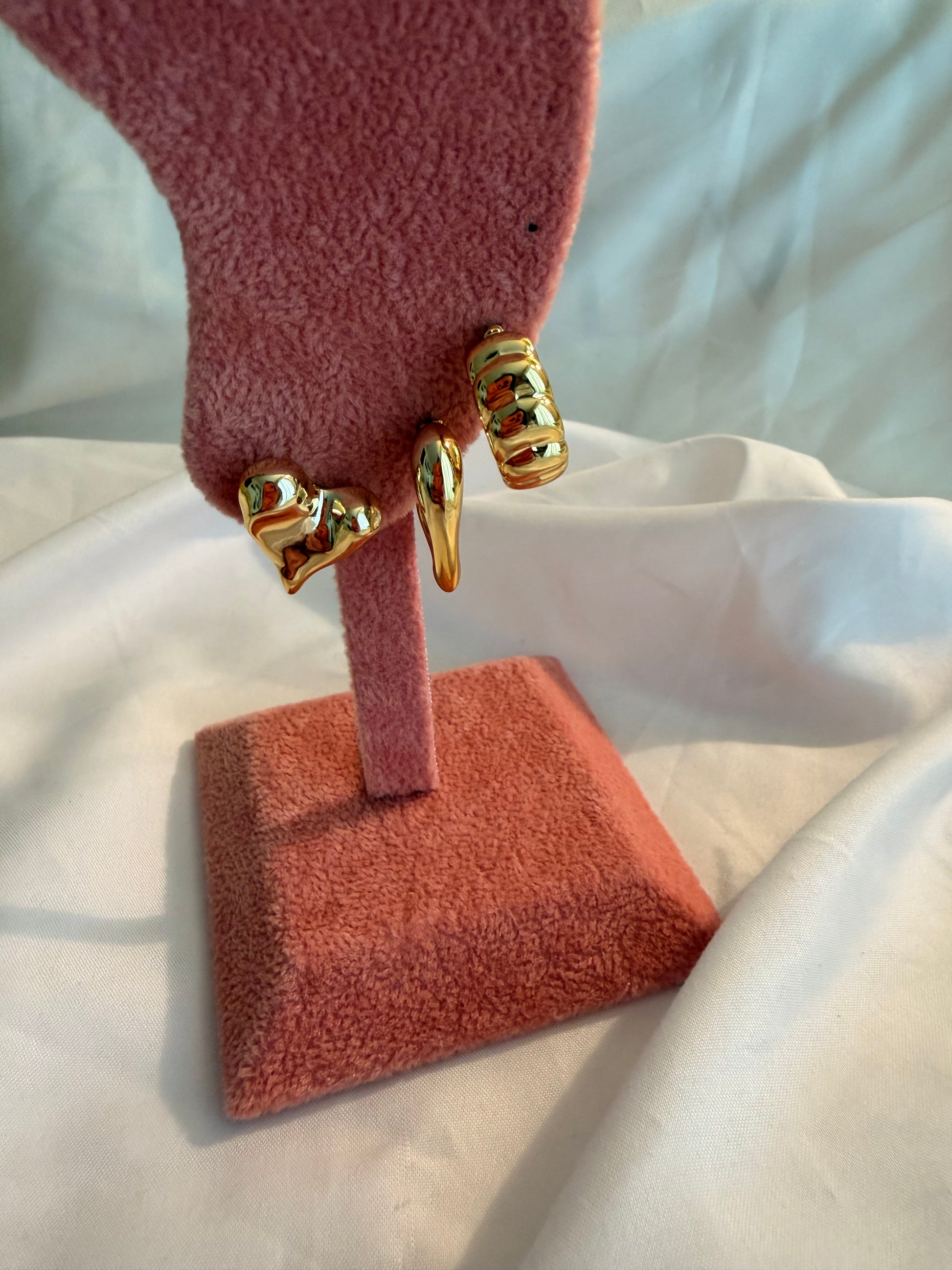 Set 3 orecchini Harriet in acciaio inox e plastica a lobo in oro e argento