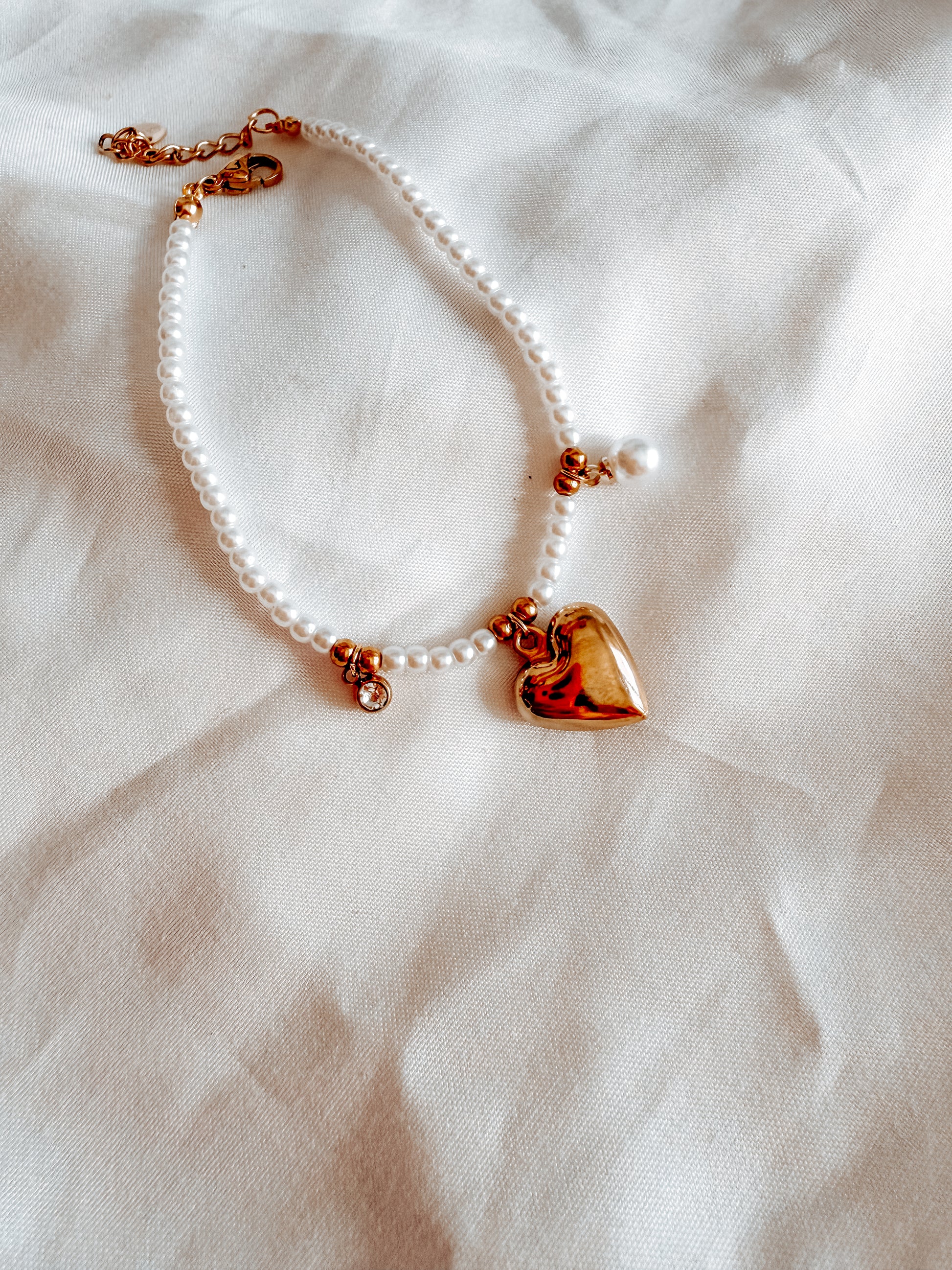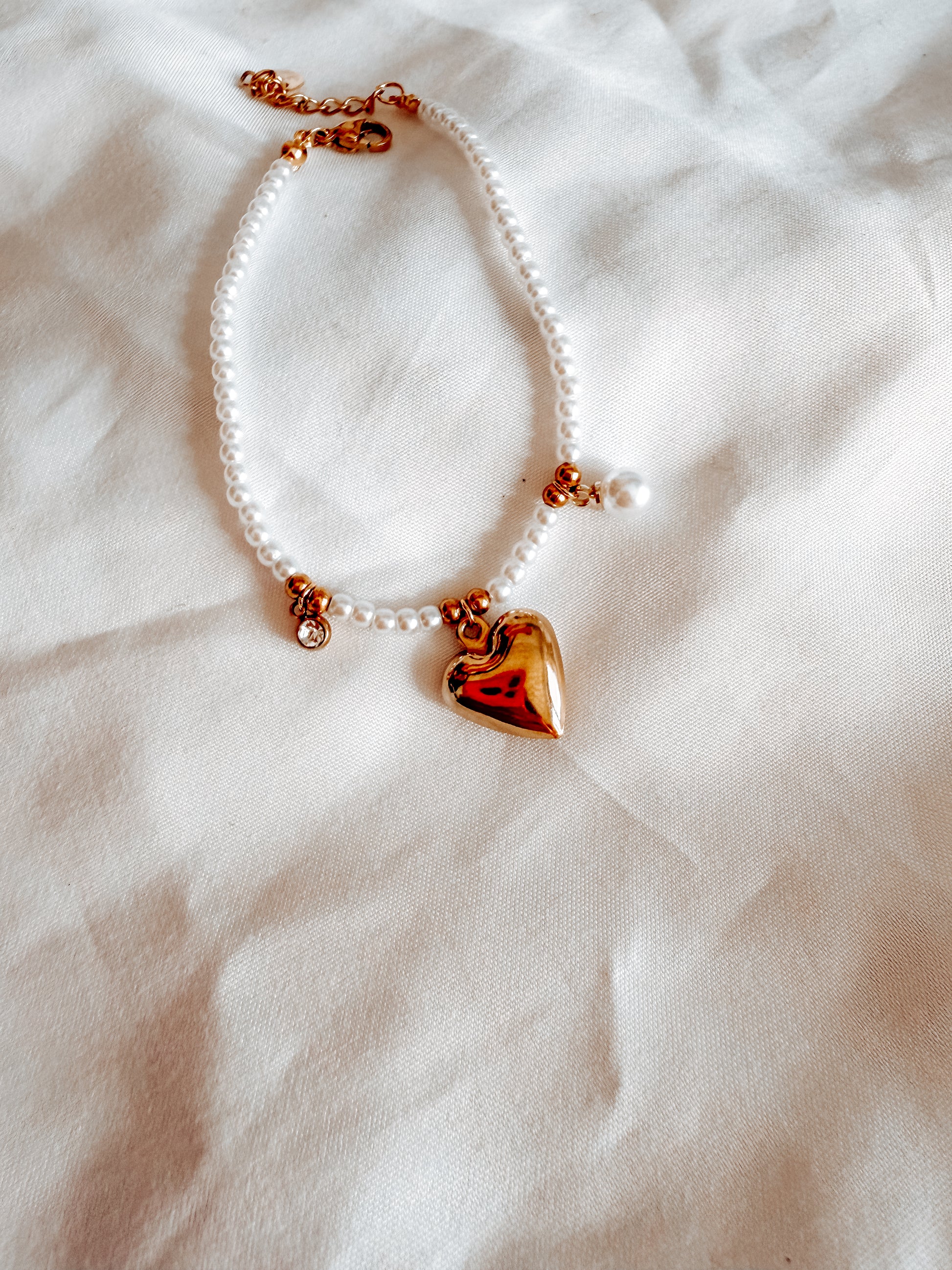 Bracciale Vera in acciaio inox. Con perline bianche.