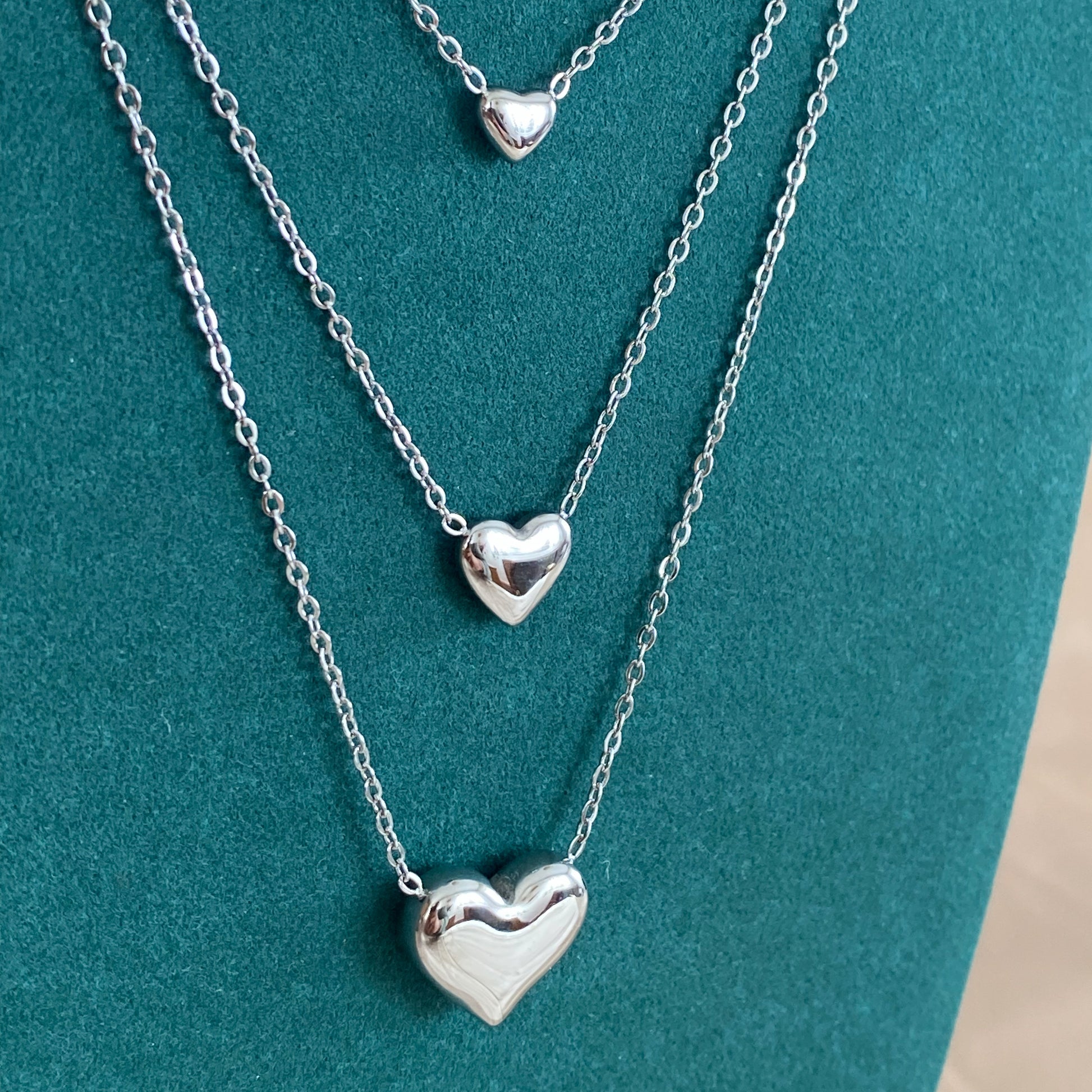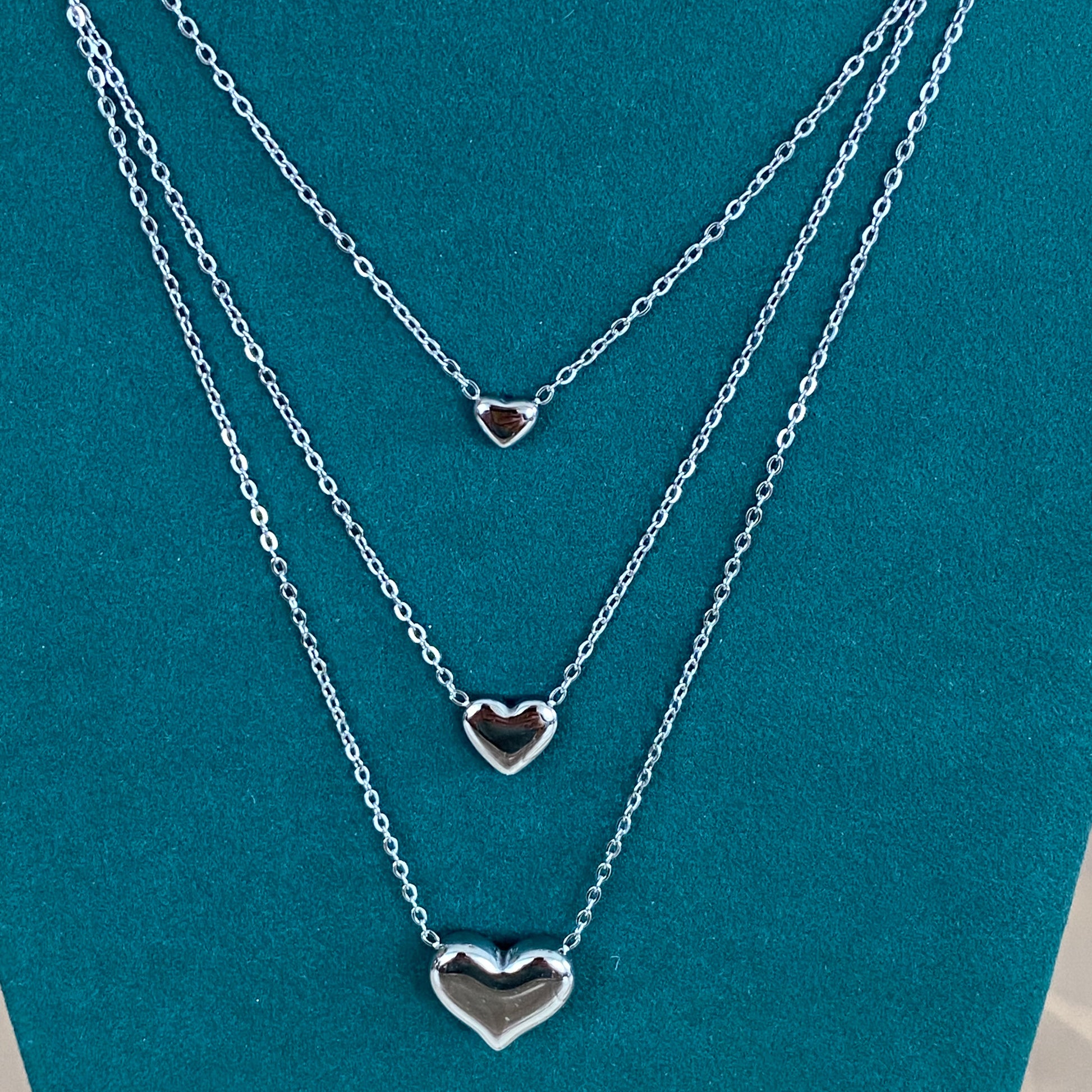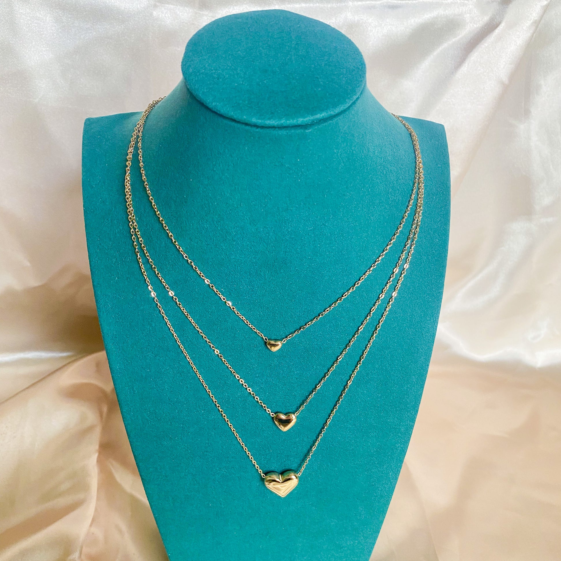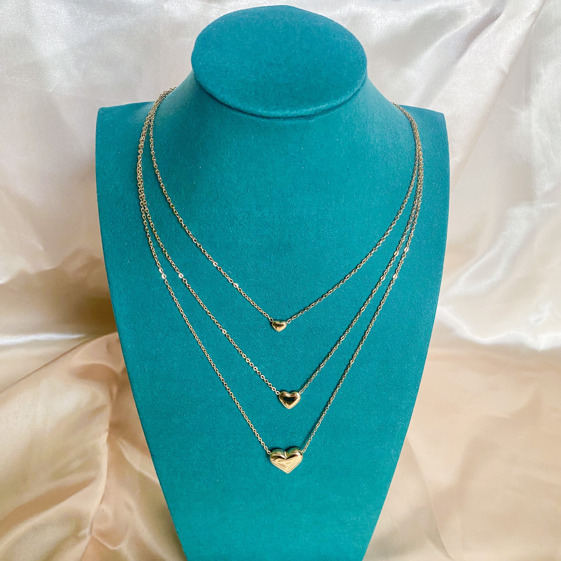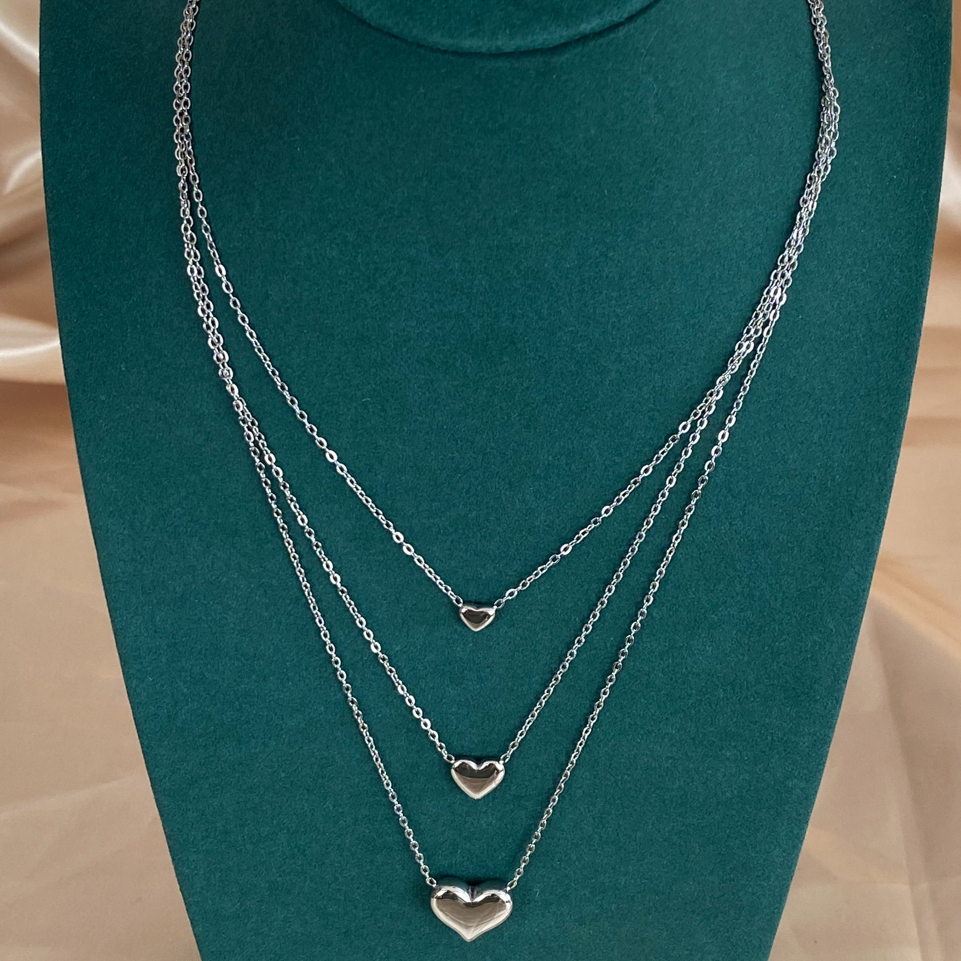 Unica collana con tripla catena e 3 ciondoli a cuori