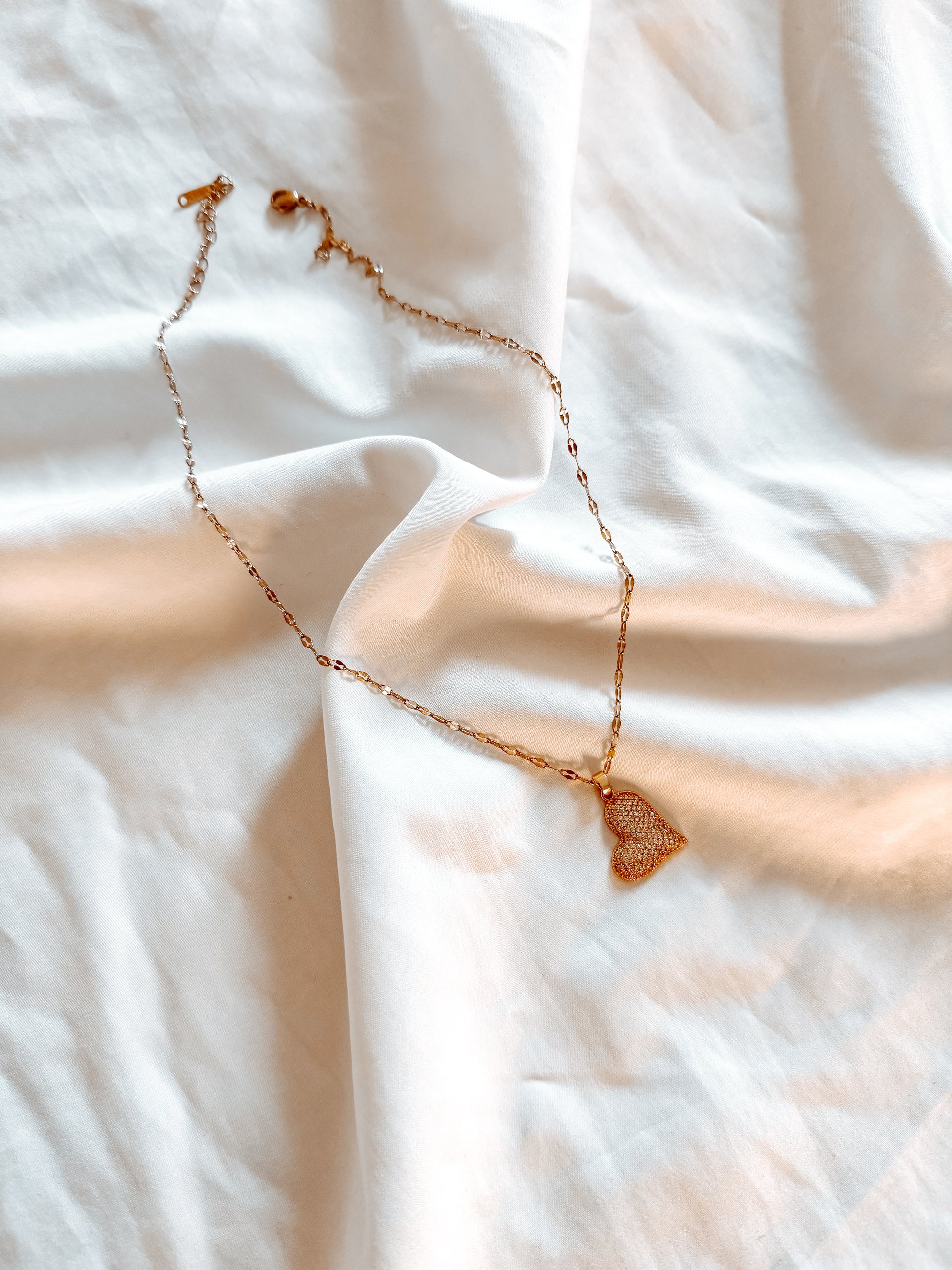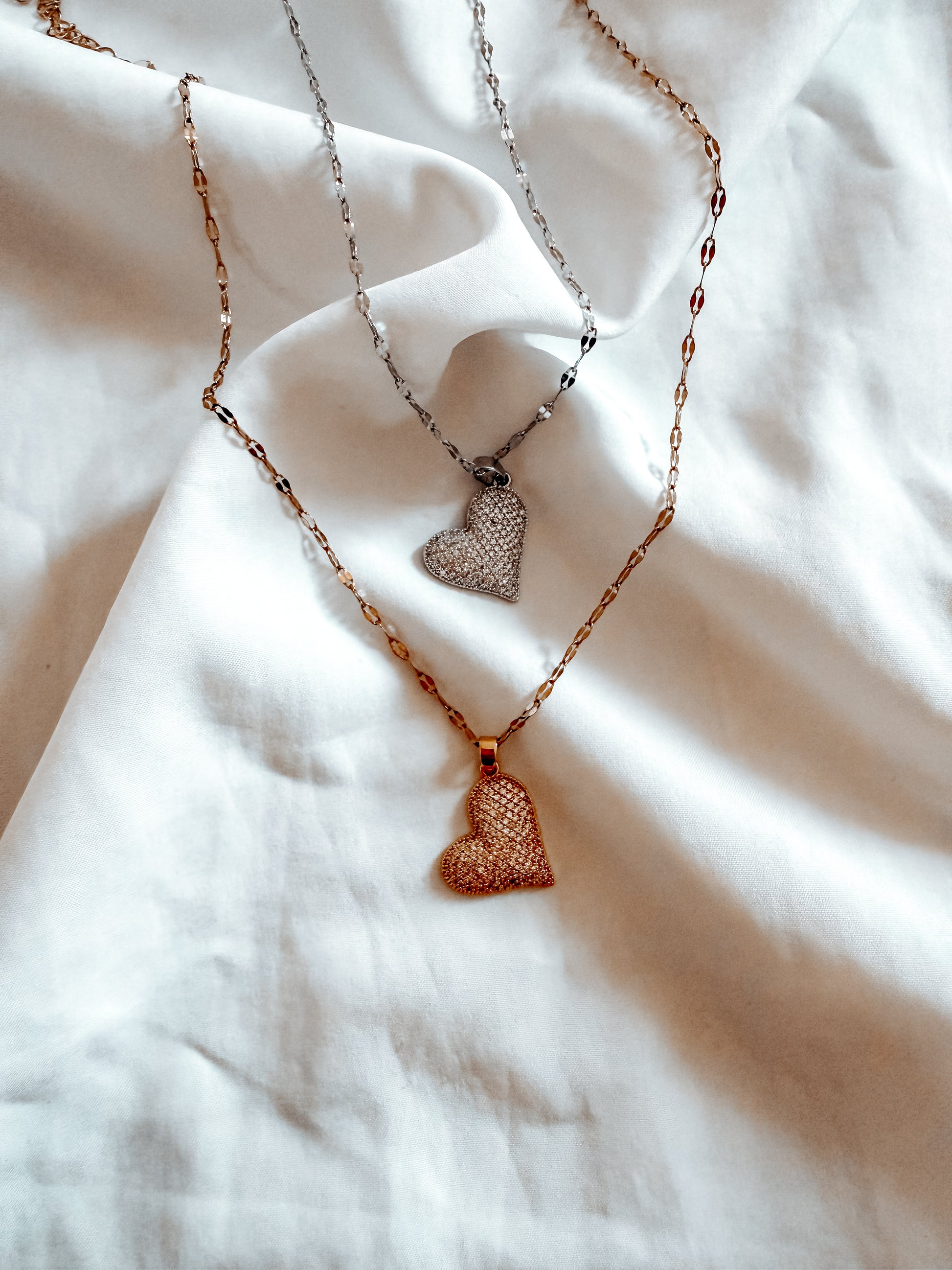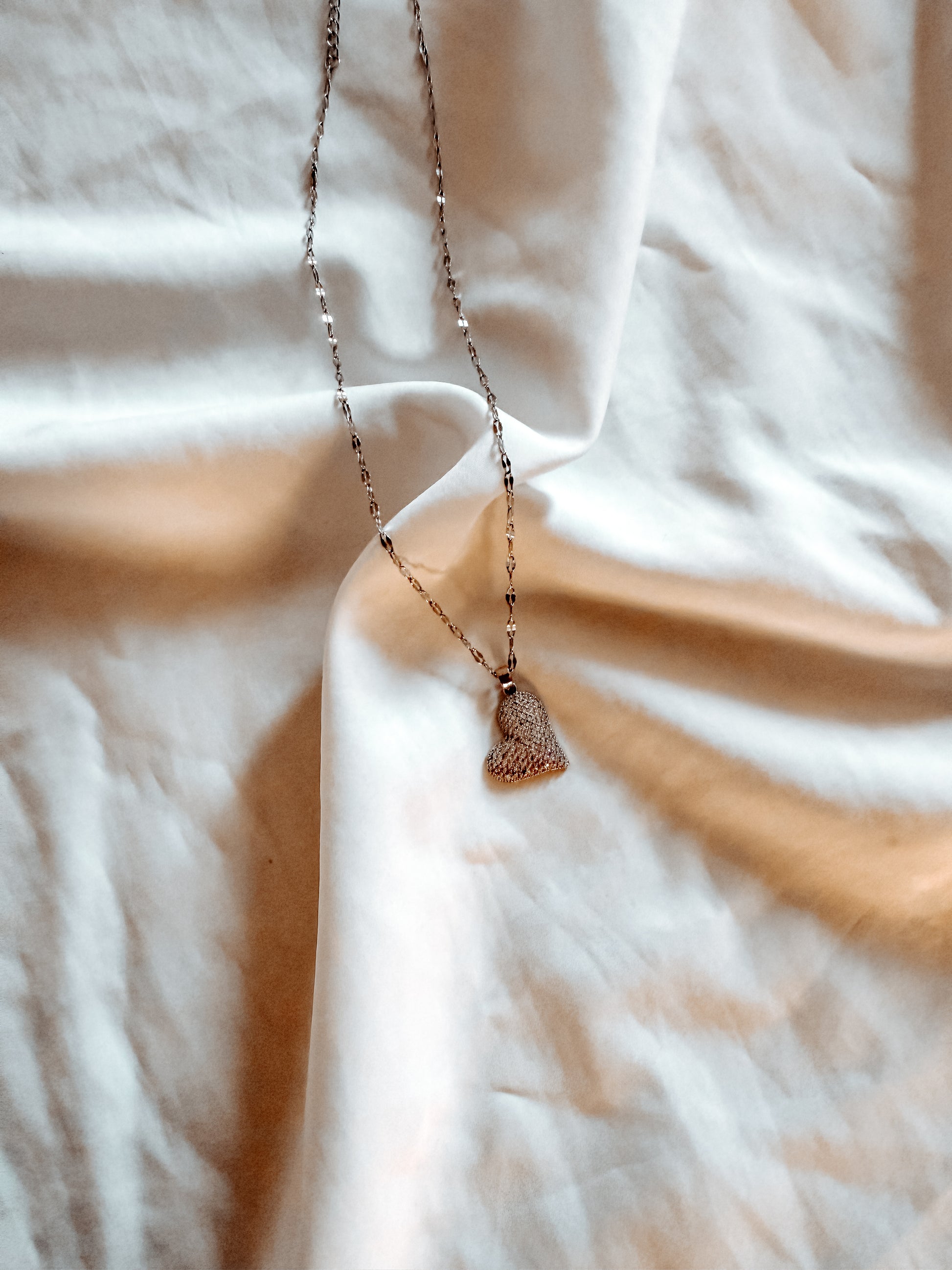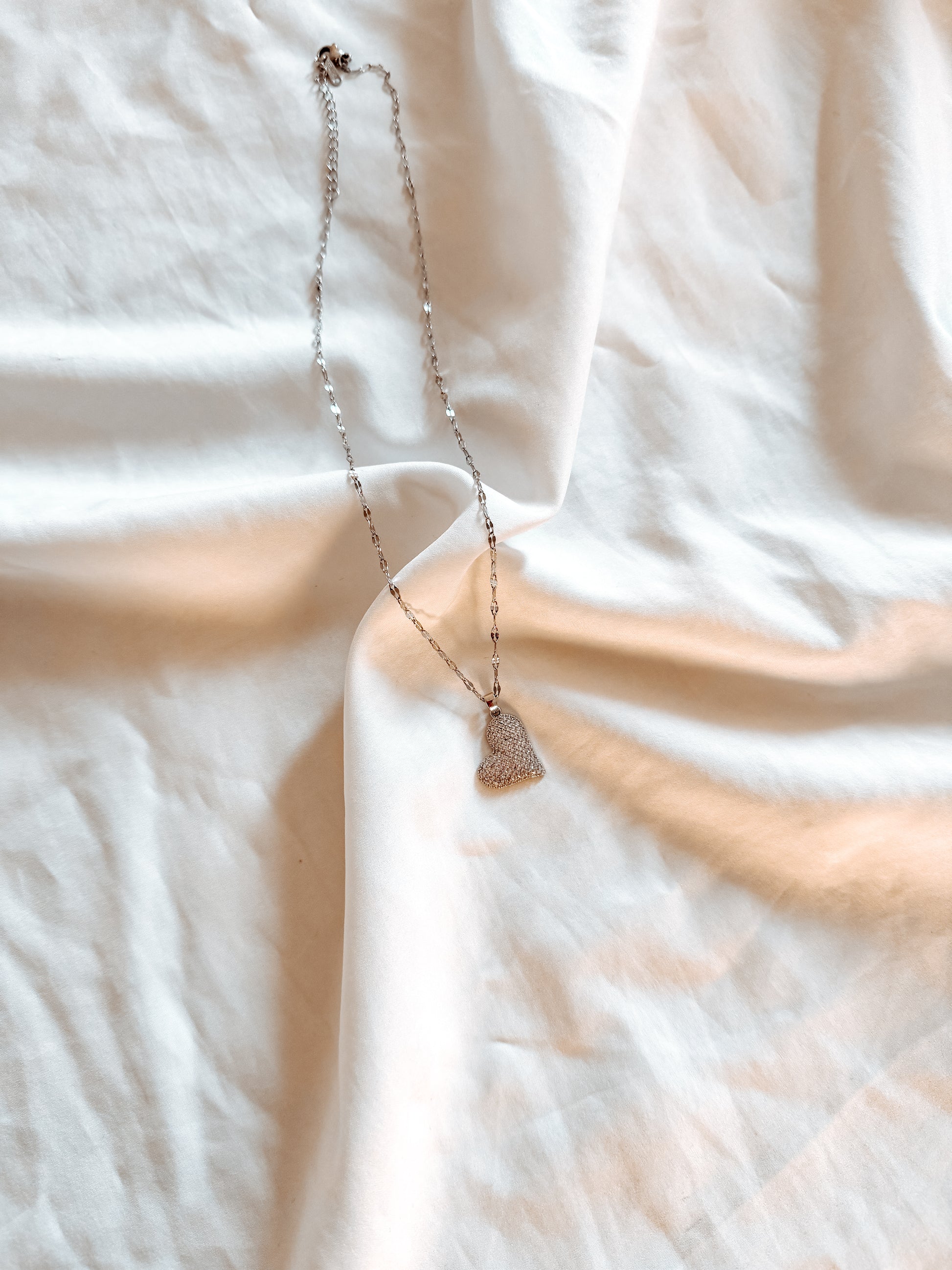 collana in acciaio inox con cuore con brillantini