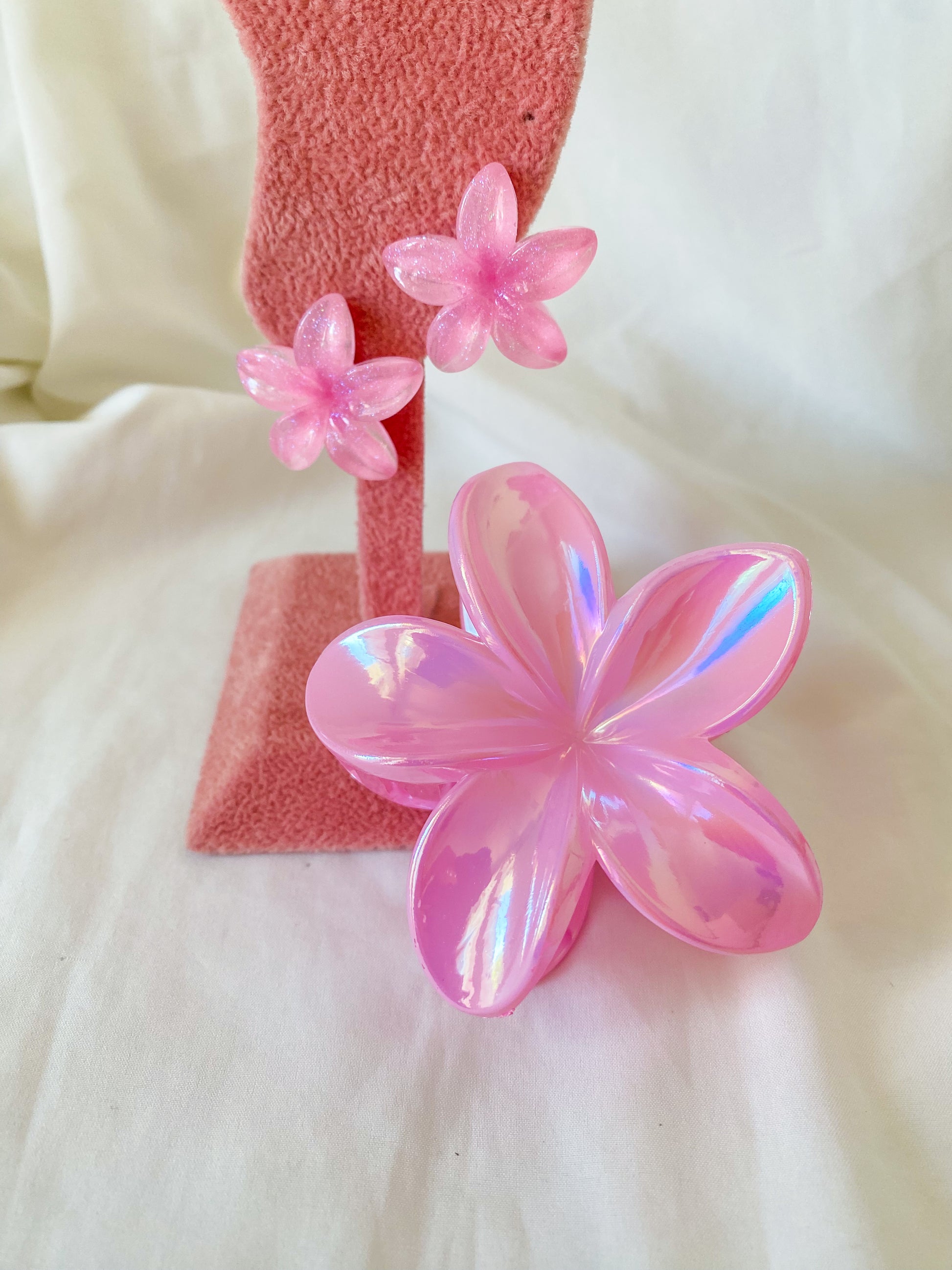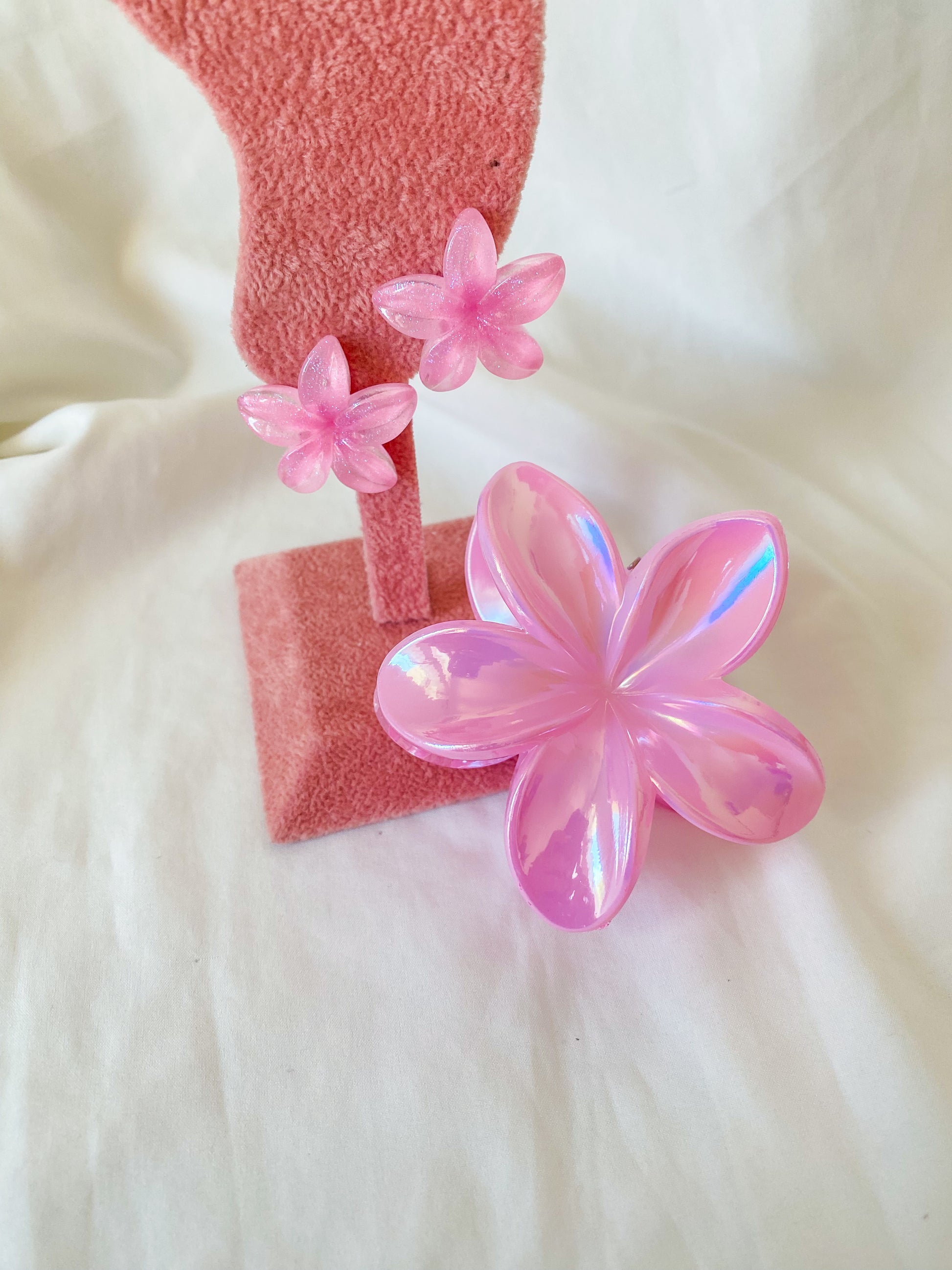 Combo orecchini + pinza fermacapelli “FLEUR” colore rosa scuro