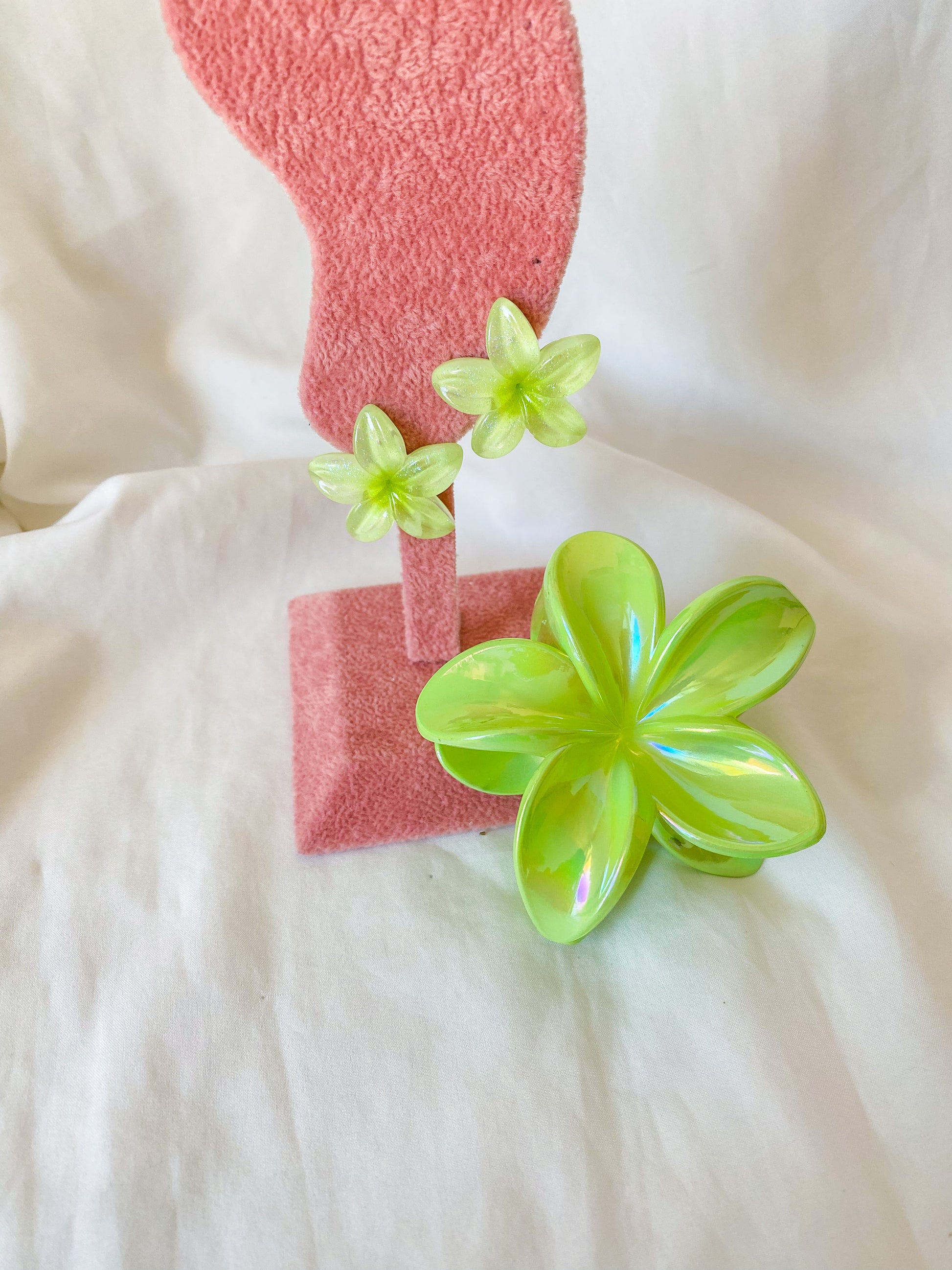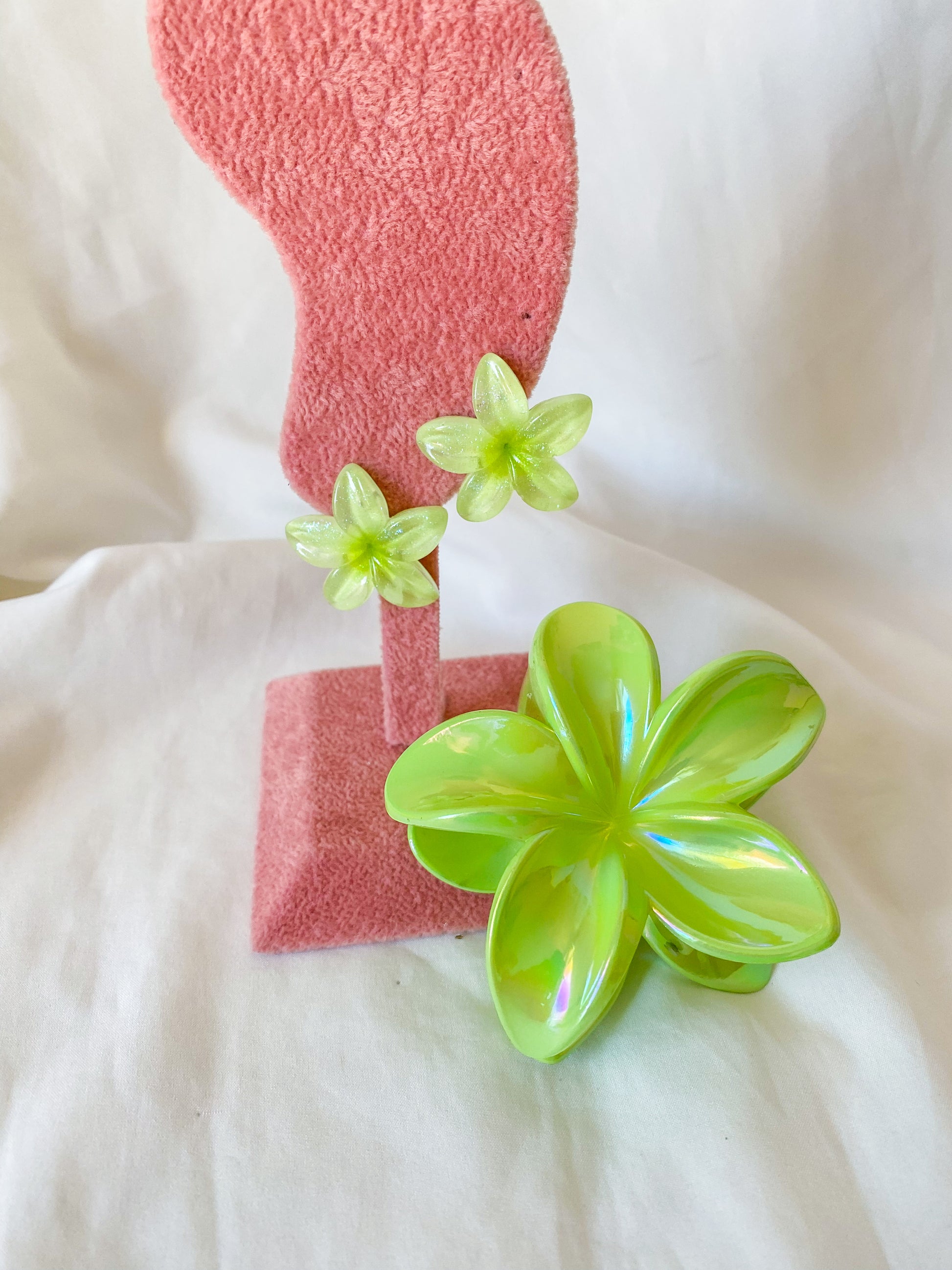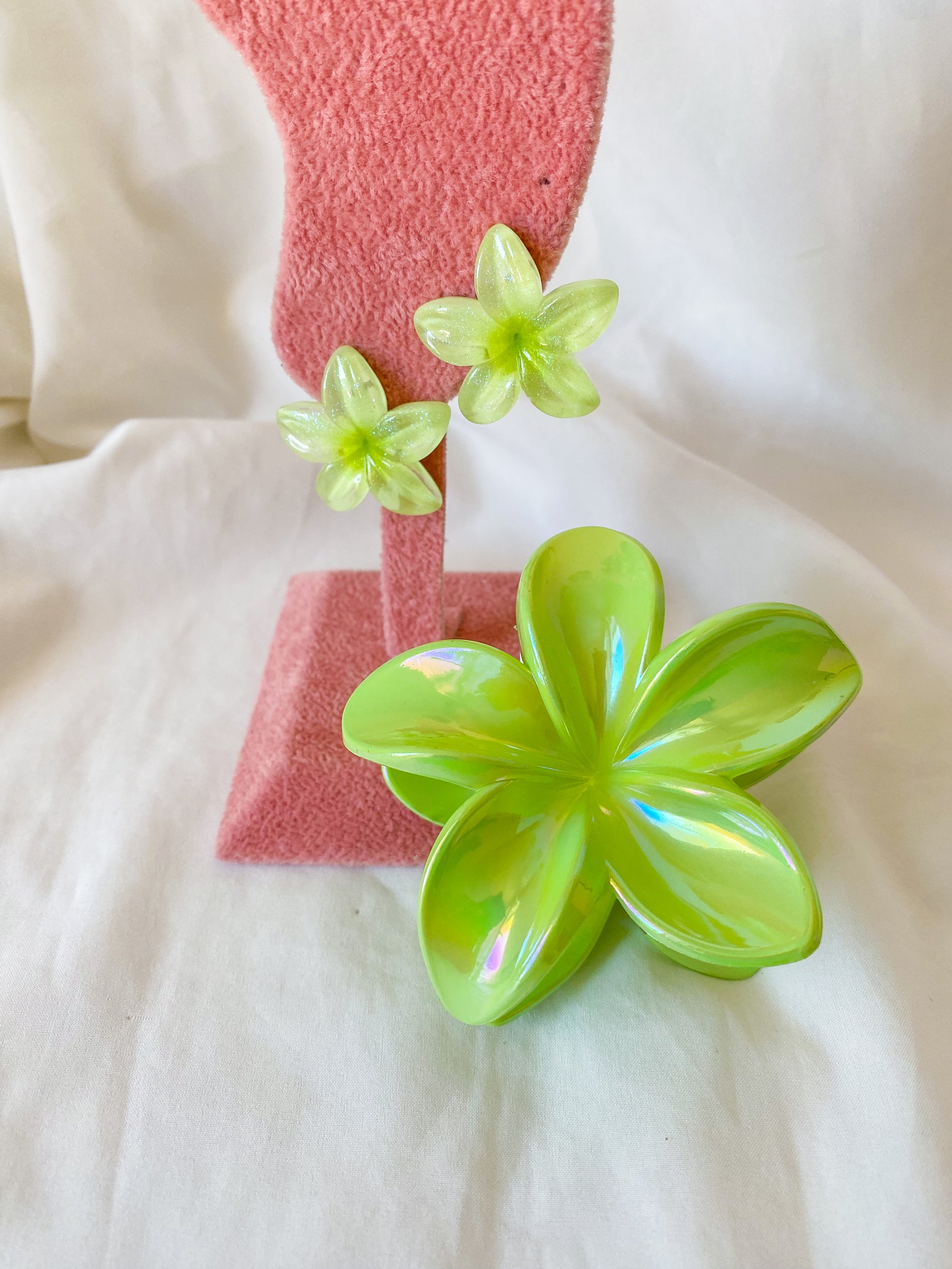 Combo orecchini + pinza fermacapelli “Fleur” colore verde