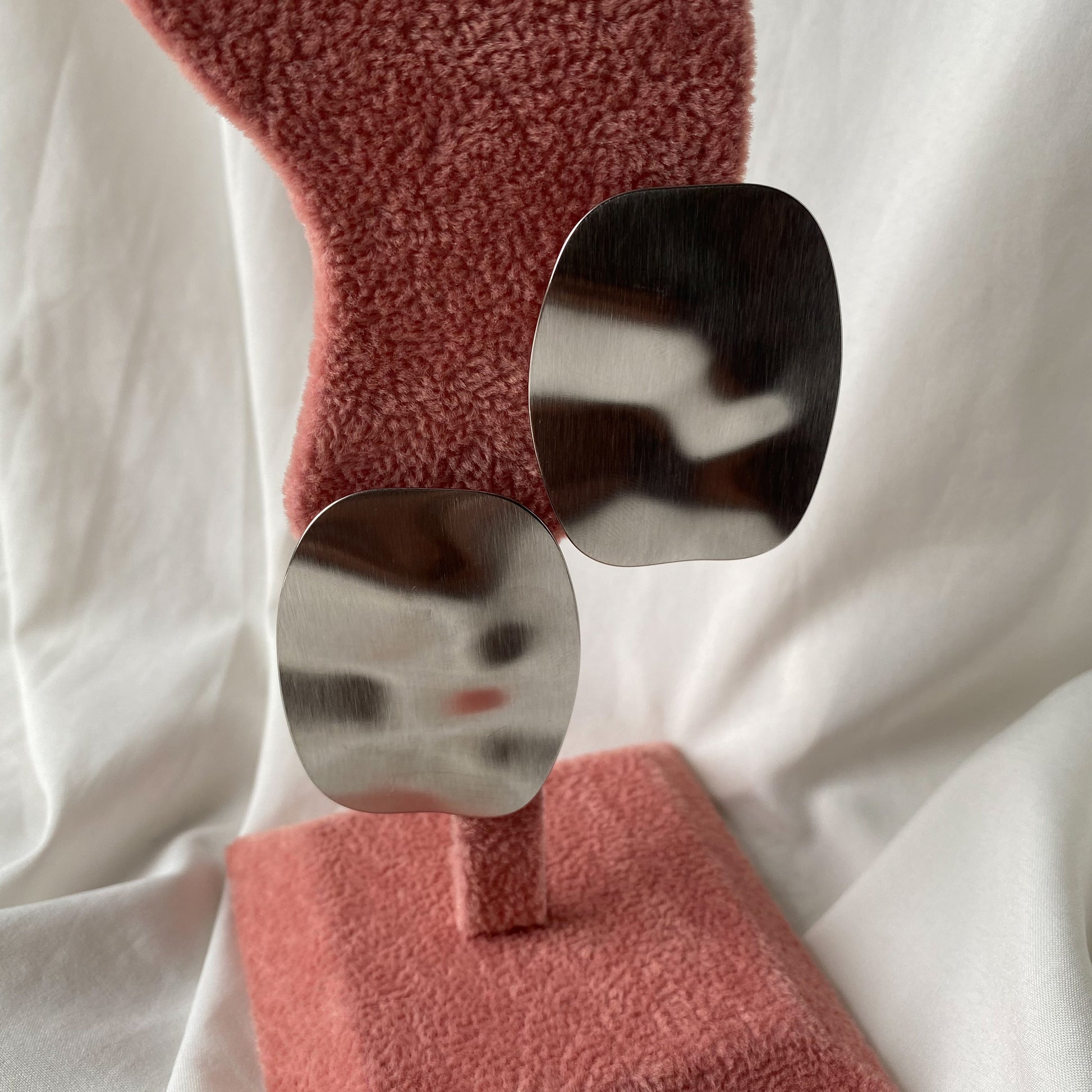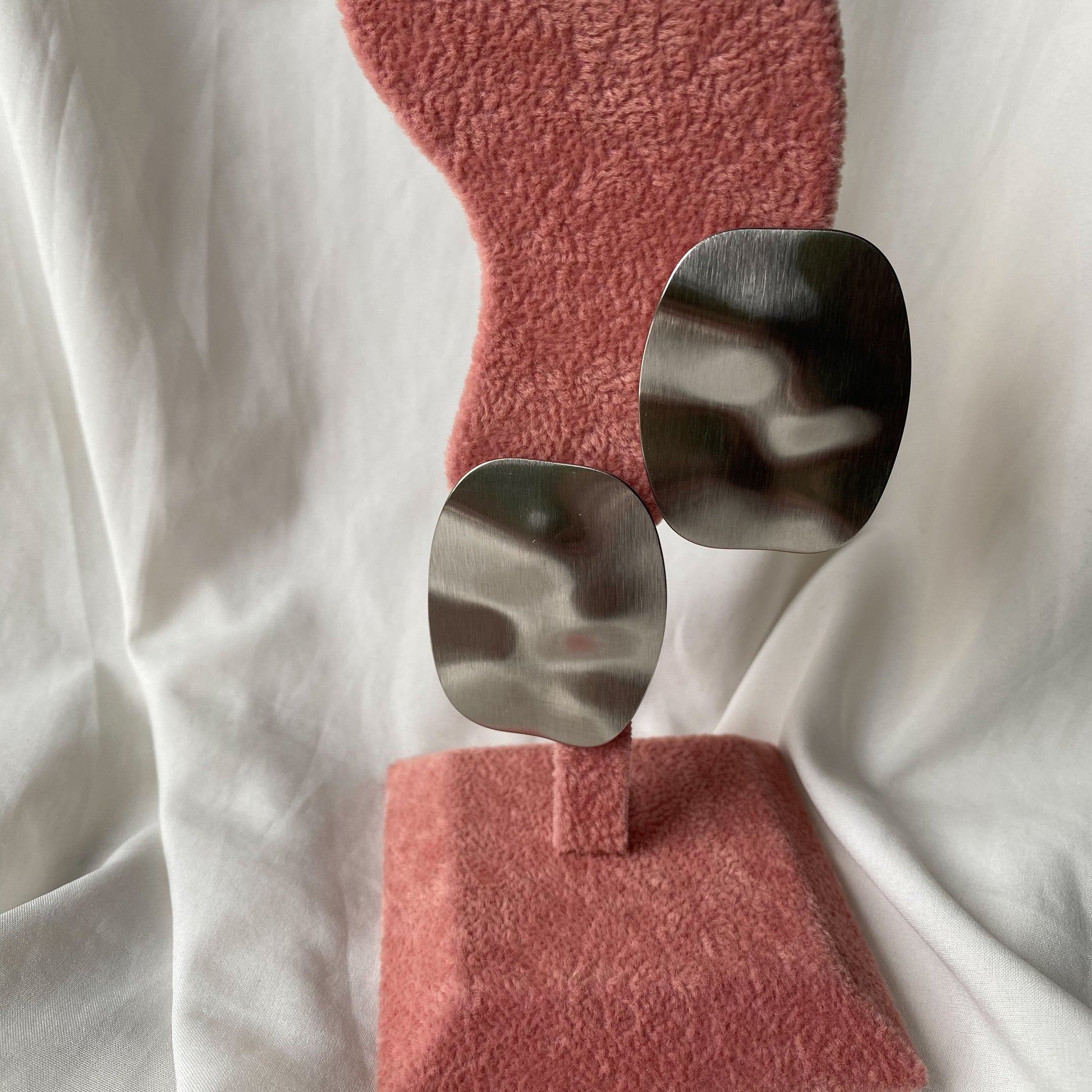 Orecchini in acciaio inox. Forma irregolare.