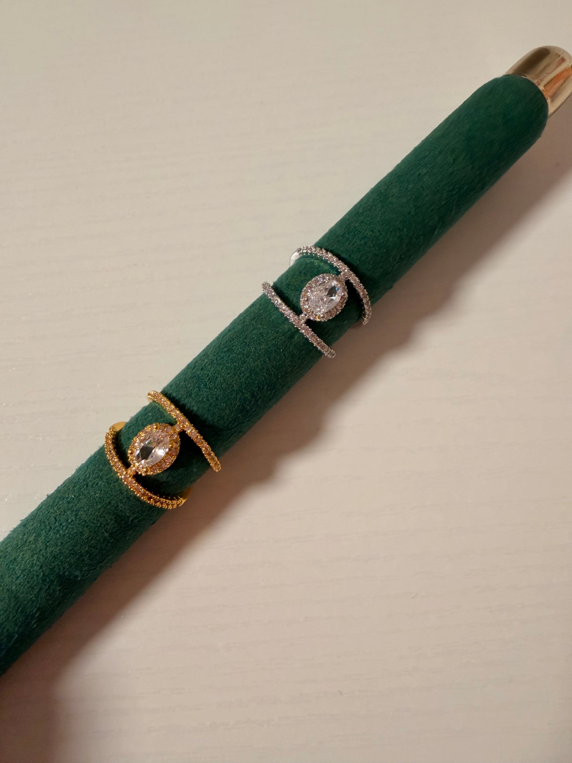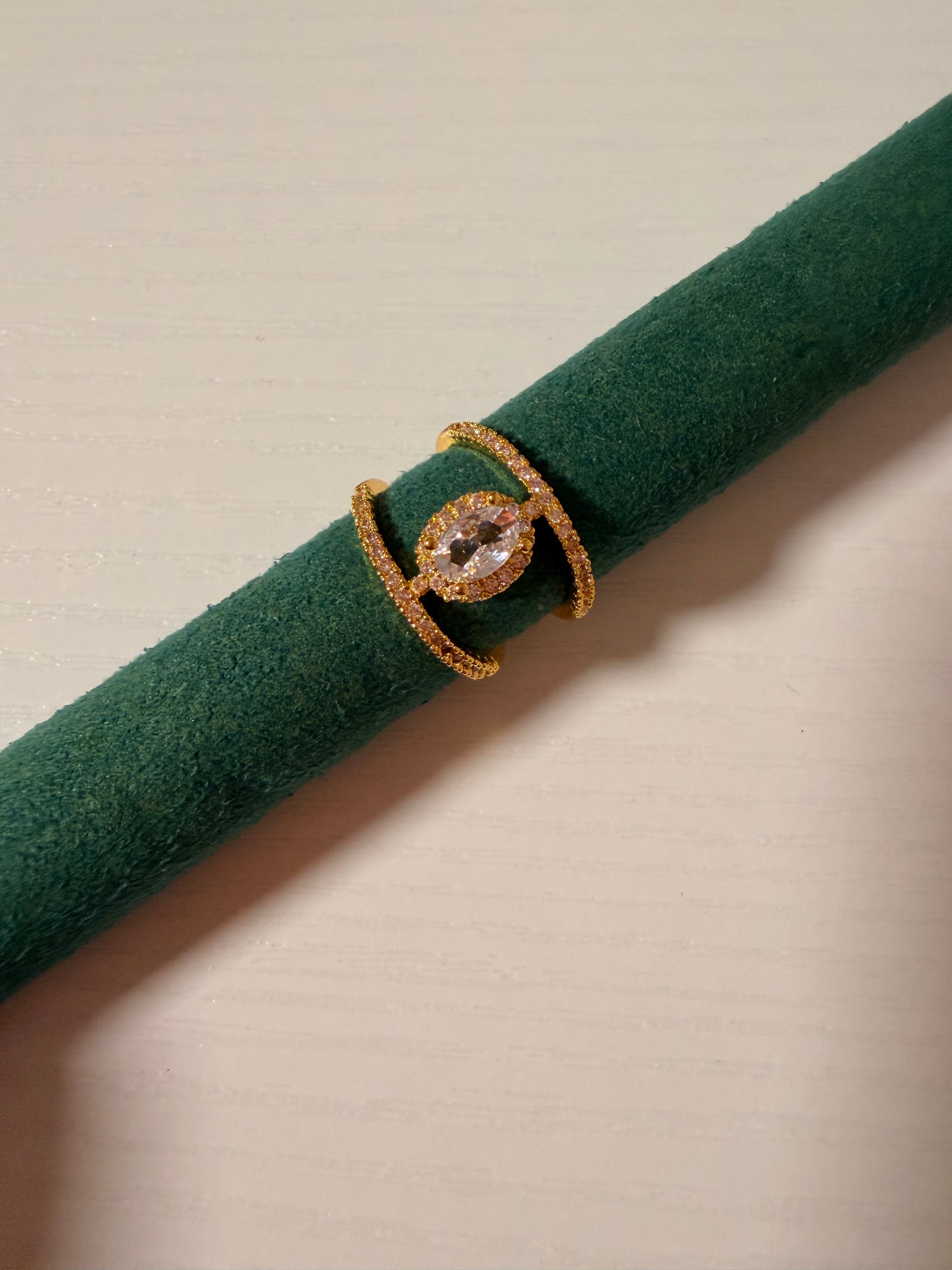 Anello “Elizabeth” regolabile in acciaio inox con strass.